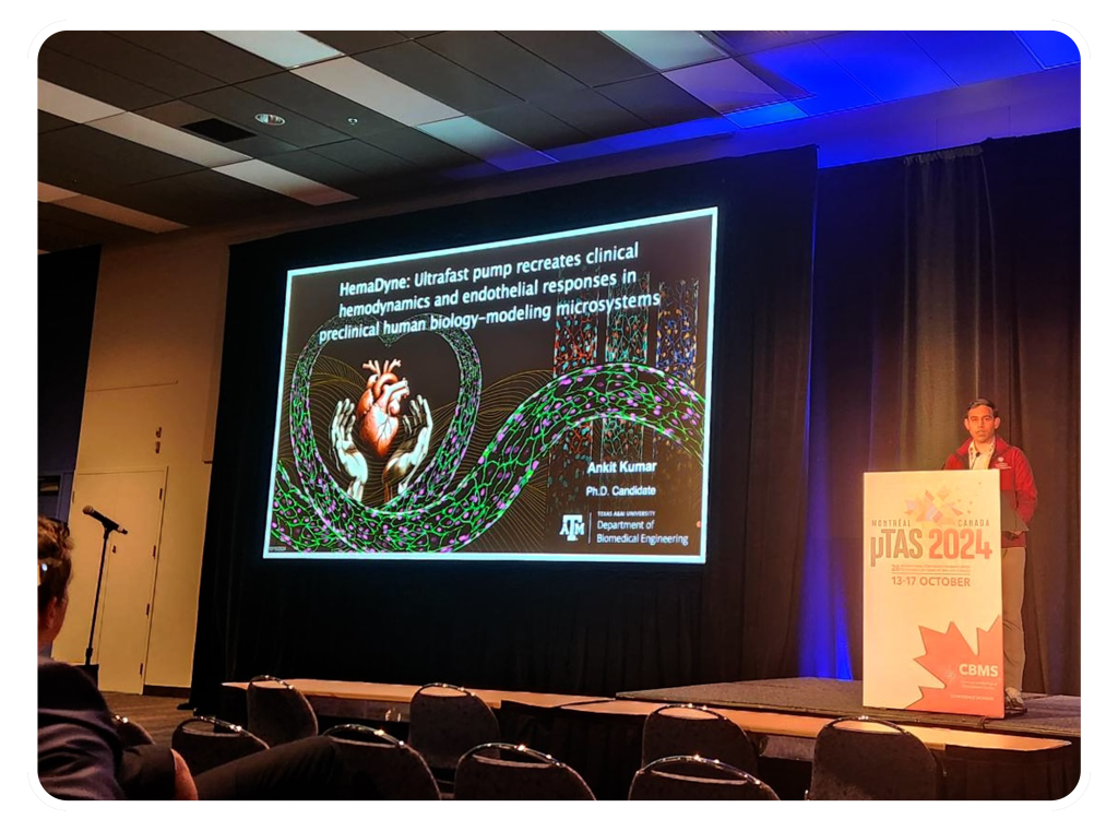 Ankit presented his research at the MicroTAS Conference in Montréal and also won CBMS Travel Award and TAMU BMEGSA Travel Award. Congratulations!